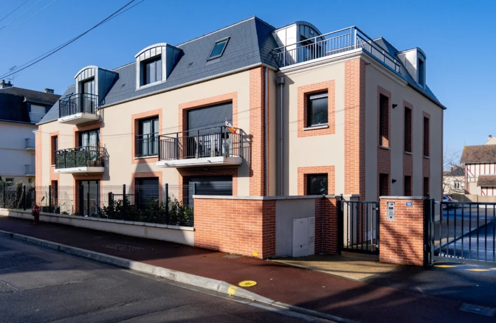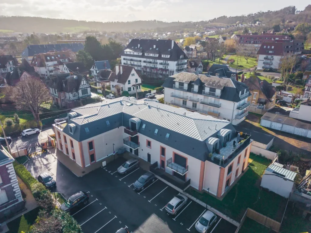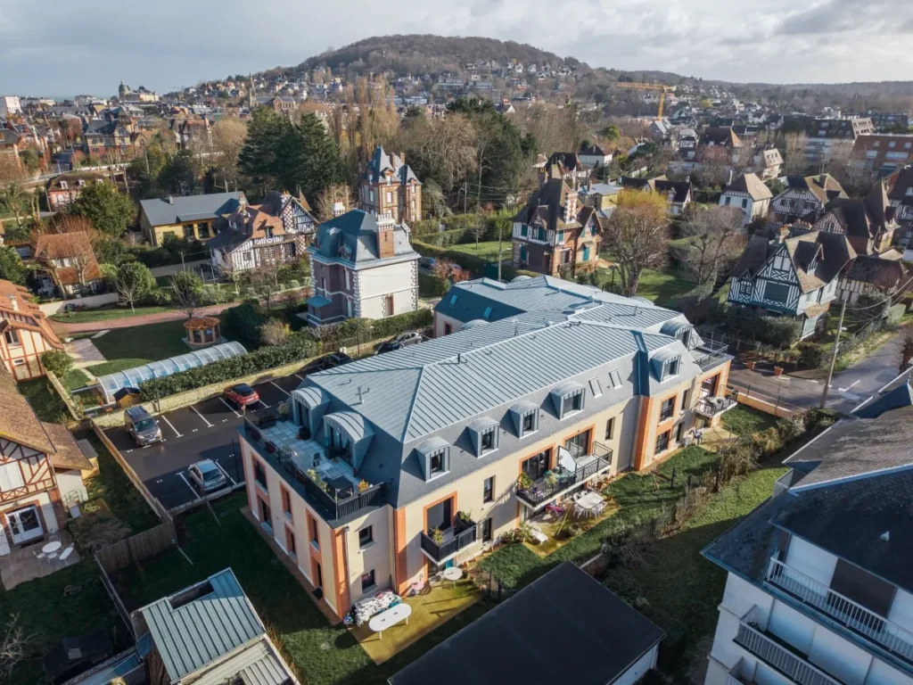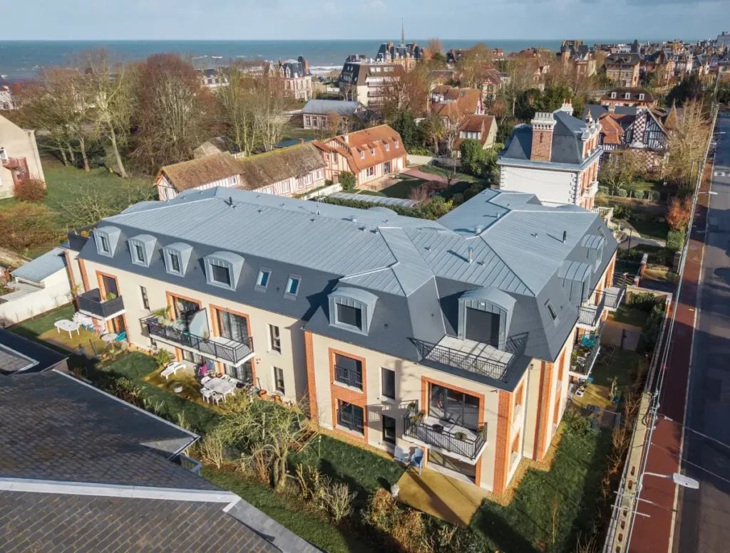 L’architecture de la résidence Zélie Delise reprend les codes du style balnéaire normand dans une version contemporaine.